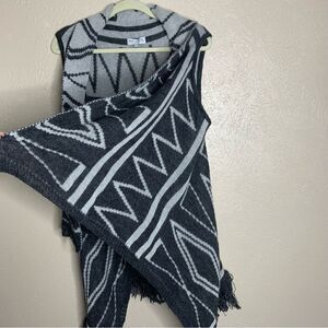 San lorenzo open front fringe wool alpaca sleeveless cardigan gray