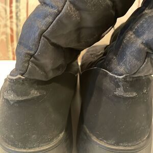 San Bernardo quilted snow boots women’s size 7 black lace up preowned good condition faux fur lined just in time for winter, there is a some minor peeling in the front and heel of boot, see photos. Super soft quilted