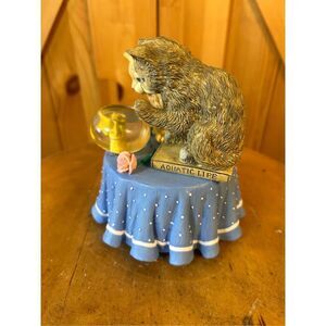 San Francisco Music Box- 2 Cats With Fish Bowl, Plays Can't Take My Eyes Off You has writing on the bottom edge see pictures fish bowl has rough edges (8602)