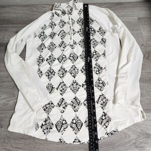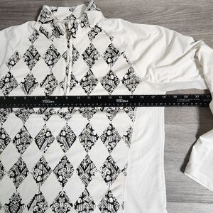 SanSolei White Black Top S Half Zip Diamond Equestrian Prints UPF 50 Breathable