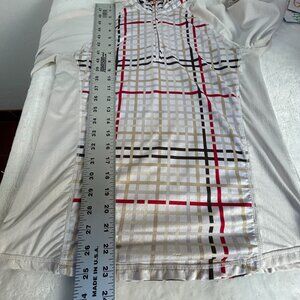 SanSoleil Beige Red Plaid Long Sleeve Mock Neck Golf Shirt Small UPF 50 Stretch