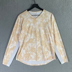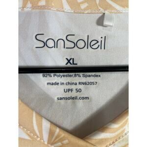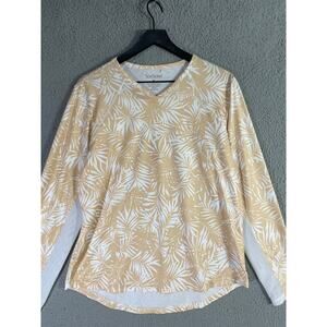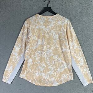 SanSoleil Palm Print UPF 50 Long Sleeve Sun Protection Golf Shirt Beige White XL
