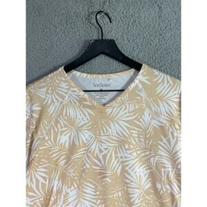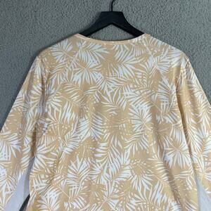 SanSoleil XL Palm Print Long Sleeve UPF 50 Sun Protection Shirt Beige White