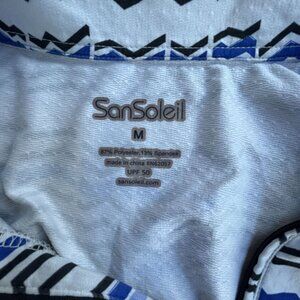 Elevate your activewear with this stylish SanSoleil long sleeve shirt featuring UPF 50 protection. Its chevron design blends performance and fashion seamlessly.