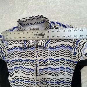 SanSoleil Womens Long Sleeve UPF 50 1/4 Zip Golf Shirt Medium Black/Blue Chevron