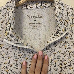 SanSoleil Womens UPF 50 Long Sleeve Martini Print 1/4 Zip Pullover Shirt Medium