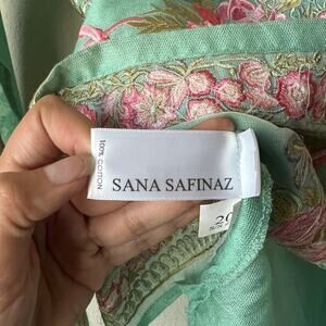 Sana Safinaz Aqua Green Pink Floral Embroidered Kurta Size Small