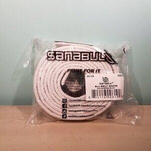 Brand new Sanabul BJJ white belt, still sealed in original packaging. High-quality cotton belt designed for durability and comfort during training. Perfect for beginners or replacements. Trusted brand used by athletes worldwide — “Fight For It.”