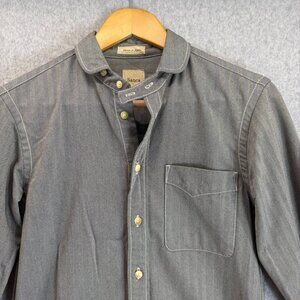 Sanca Japan Mens ButtonFront Shirt LS Band Collar Woven Black White Size 1 Small