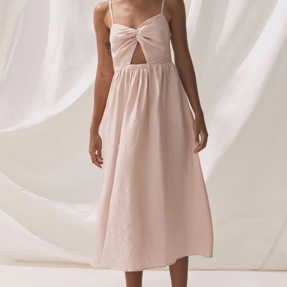 We love the feminine yet modern appeal of the Alessa Dress. Featuring a twist front sweetheart neckline and small cut-out on the front, the back has a lovely lace up detail, allowing for fully adjustable straps. The waist is elasticised for an easy fit. Also featuring side seam pockets on the fluid skirt, it sits at a lovely low calf level.