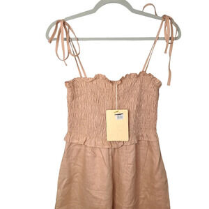 Sancia Anthropologie Aerin Linen Jumpsuit in Parfait Size XS NWT. Oatmeal/Peach color. 100% linen, 100% rayon lining. Front pockets!