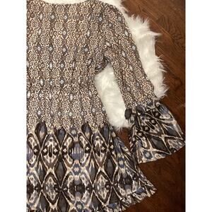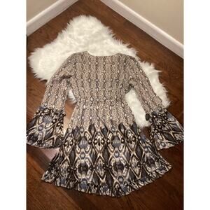 Sanctuary 100% Cotton Boho Tribal Print Flare Long Sleeve Short Empire Dress