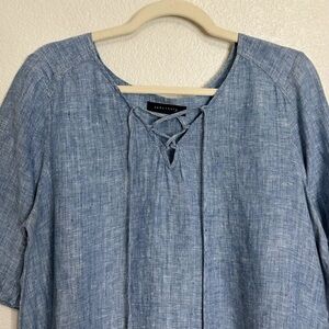 Sanctuary 100% Linen Chambray Lace Up Ruffled Sleeves Top, Sz Large