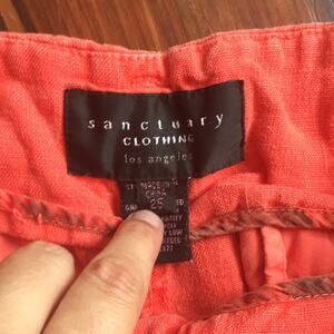 Sanctuary 100% linen flat front cuffed mid rise shorts sz 25