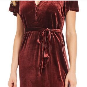 Sanctuary Airy Night Slit Midi Dress Dark Dusty Red Velvet Belted HOCO Size S