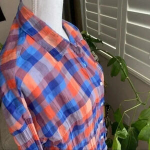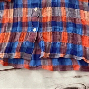 Sanctuary Anthropology Plaid Cotton long sleeve orange and blue scrunched Button Down Top