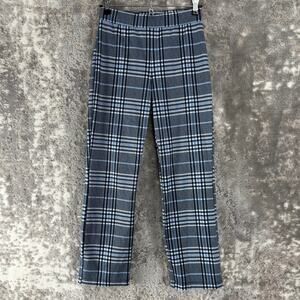 Sanctuary Anthrolologie Sz XXS Ankle Plaid Stretch Waist Straight Leg Pants Blue