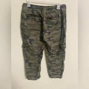 Sanctuary Anthropologie Cropped Cargo Pull On Linen Camo Pants Camouflage Small