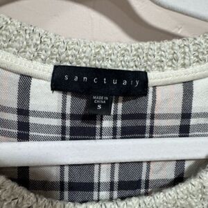 Sanctuary Anthropologie Gray Knit Sweater Side Slits Plaid Underlay Size Small