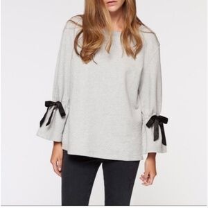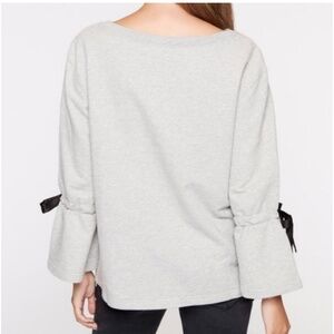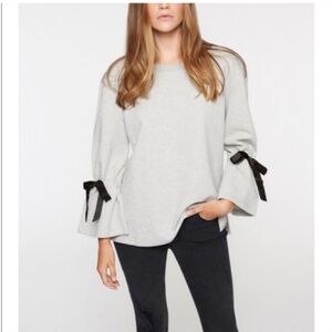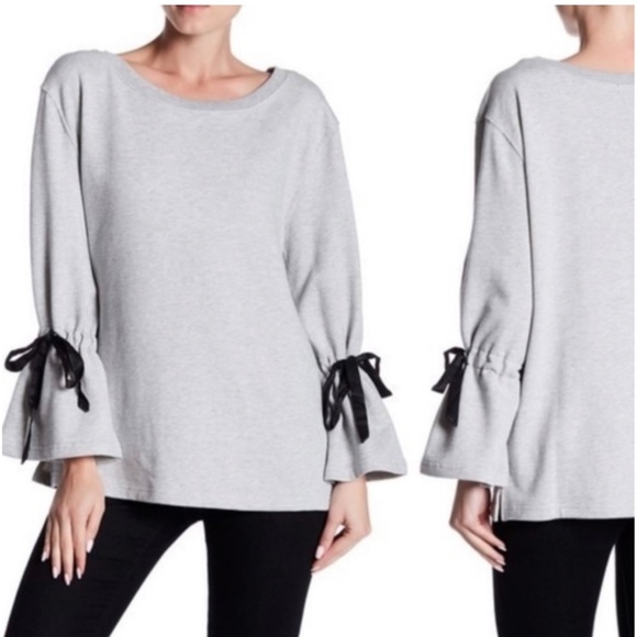 Cozy and chic come together with this fantastic Tierney Sweatshirt. Complete with charming satin bows that cinch the sleeves, creating a bell sleeve effect.