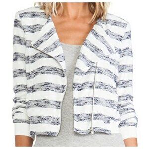 Sanctuary Asymmetric Zip Front Blue and White Striped Cropped Jacket Women's Lg