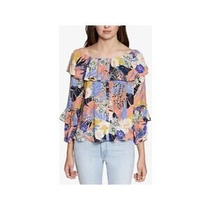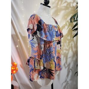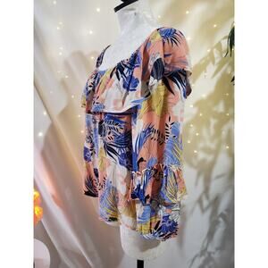 Sanctuary Avery Womens Tropical Floral Ruffled Tiered Blouse Size XL Flowy Top
