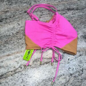 Sanctuary Balancing Act Shirred-Side Cropped Pink Aura Tankini Top Women's XS