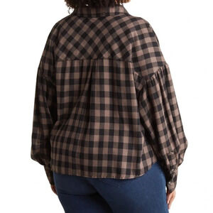 “This blouse is a fun and modern take on the plaid flannel. With a trendy puff sleeve, it’s a great update to your fall wardrobe!”
