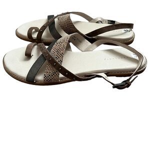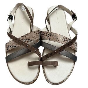Sanctuary Biz Sandals Womens 9.5M Stud Flat Metallic Snake Strappy Slingback