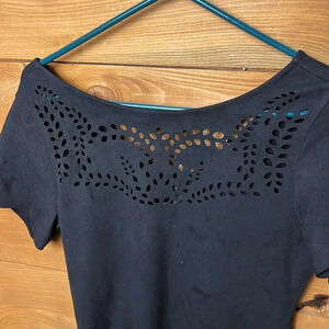 Sanctuary Black Alexia Faux Suede Sheath Cocktail Dress Women Md Laser Cut Event