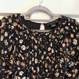 Sanctuary 3/4 sleeve dress. Black with feminine floral print, ruffle front and button closure. Fully lined. Excellent used condition. Smoke free, dog friendly home.