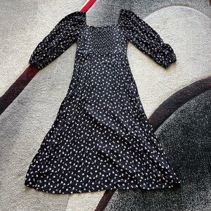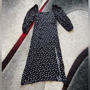 Sanctuary Black Floral Square Neck Puff Sleeve MIDI Dress