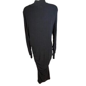 Sanctuary Black Long Sleeve Midi Dress Sz L Draped Side Ruched Stretch High Neck