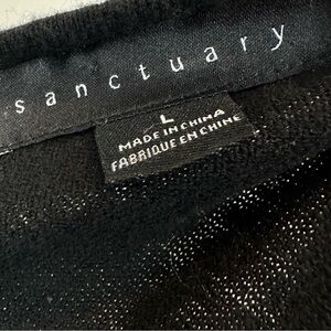 Sanctuary black lightweight sweater, women’s size Large. Features a mock neck with subtle choker-style collar and dramatic open back cutout. Long sleeve, ribbed cuffs and hem, and soft knit fabric. Perfect transitional piece that can be styled casually with jeans or dressed up for night out.