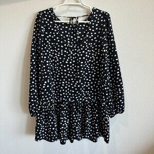 Sanctuary Black & White Spotted Drop Waist Ruffle Hem Long Sleeve Mini Dress XS