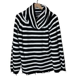 Sanctuary Black Winter White Striped Cowl Neck Sweater Size Small