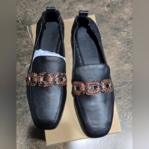 Sanctuary Black and Brown Loafers with Chain-Link Detail #875