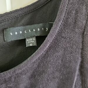 Sleeveless midi dress with geometric patterns. Bold black and red design, size S