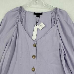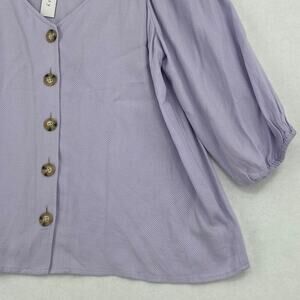 Sanctuary Blouse Size L Light Lavender Modern V-Neck Button Front Elbow Sleeve