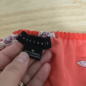Sanctuary Blouse Womens Medium Red Floral Square Neck Long Sleeve Button Up Top