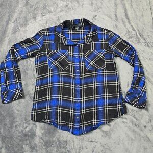 Sanctuary Blue & Black Plaid Button Down Shirt | Women’s Medium