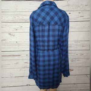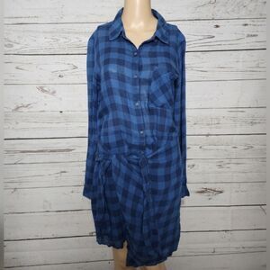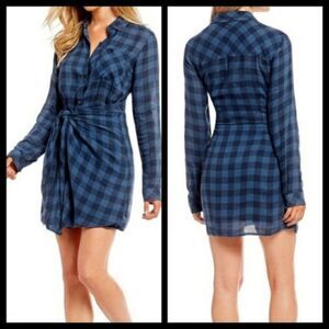 Sanctuary Blue Plaid Long Sleeve Linen Rayon Dress Small NWT