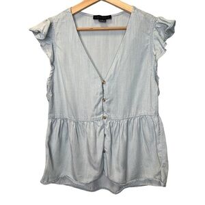 Sanctuary | Blue Ruffle Sleeve V Neck Blouse Sz S