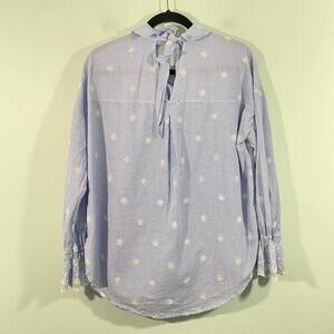 Sanctuary Blue Striped All Over Eyelet Flowers Oversized Button Up Blouse Size S