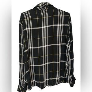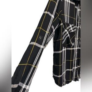 Sanctuary Boyfriend Shirt Black Plaid Snap Button Up Rayon Button Down. Size XL. Very soft. Oversized.