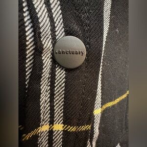 Sanctuary Boyfriend Shirt Black Plaid Snap Button Up Rayon Button Down