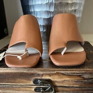 These NOWB Sanctuary Slide Leather Heeled Sandals feature a toe-loop design and a block heel