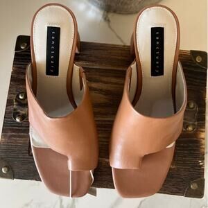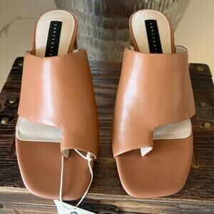 Sanctuary Brave Slide Leather Heeled Sandals in Tan
