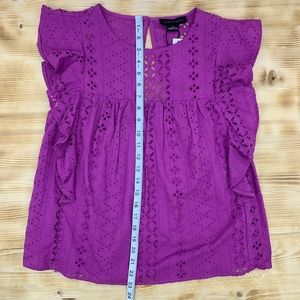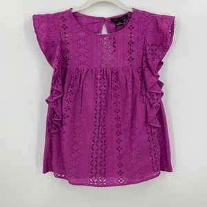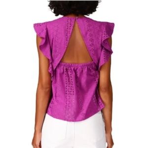 Sanctuary Breezy Eyelet Flutter Sleeve Back Cut-Out Shell Top Sz M