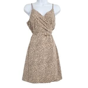 Sanctuary Brown Leopard Print Spaghetti Strap Wrap Dress Womens Size Large L